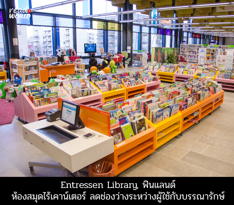 เมืองเอสโปมีประชากรที่มีรายได้ต่ำกว่าเมืองอื่นๆ ในฟินแลนด์ ทั้งยังมีพ่อแม่เลี้ยงเดี่ยวและประชากรผู้อพยพจำนวนมาก ห้องสมุด Entressen เลือกที่จะตั้งอยู่ในห้างสรรพสินค้า เพื่อไม่ให้เป็นอุปสรรคในการเดินทางมาใช้บริการ และดูกลมกลืนกับชีวิตประจำวันของชาวเมือง